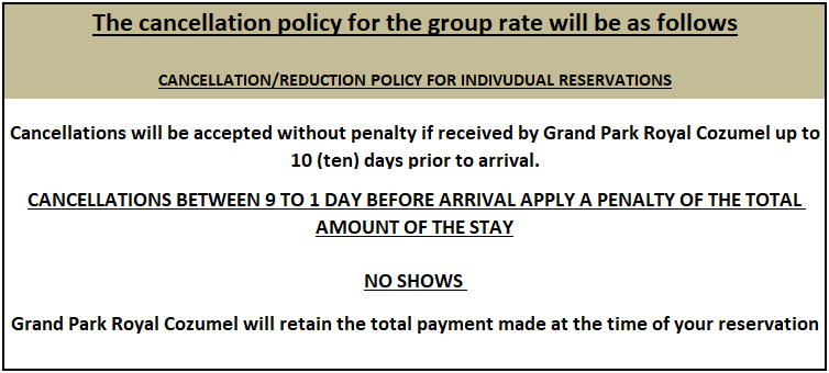 The Grand Park Royal has again provided us with All-Inclusive group rates for Sept. 2026